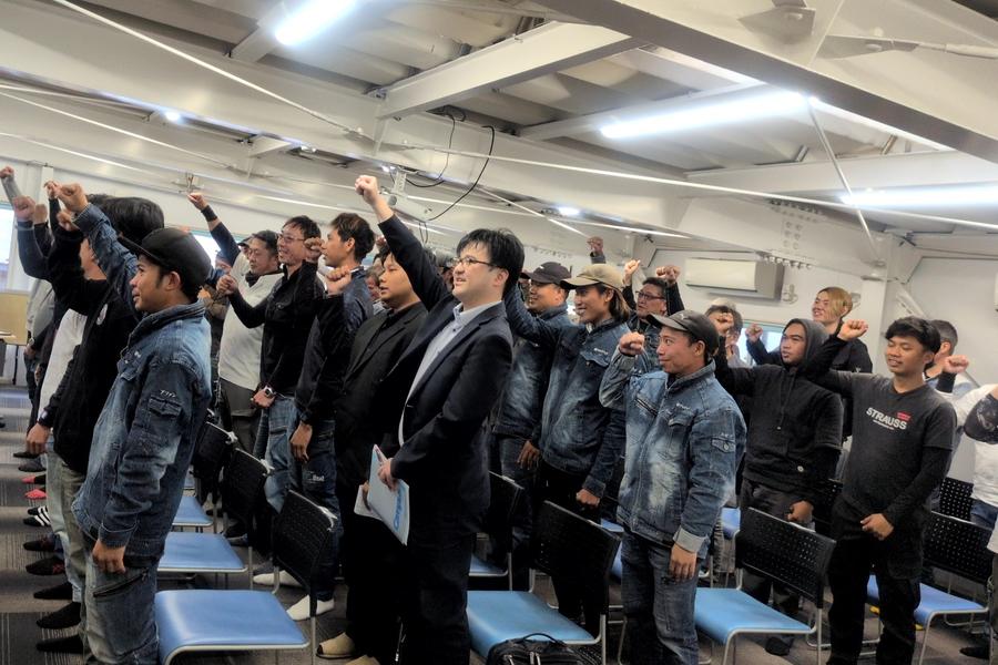 「10/9(木)安全意識の共有と向上のため、協力業者の皆さまにもご参加いただき、臨時安全大会を開催いたしました。